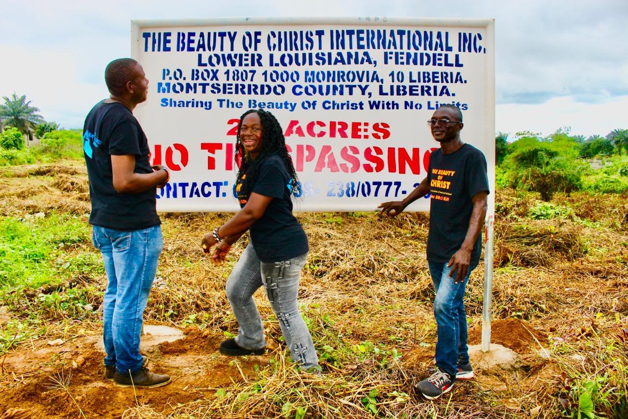 Members of The Beauty of Christ International joyfully stand before their newly secured 20-acre property in Lower Louisiana, Fendell, Liberia. This land marks a powerful step forward in their mission to expand community outreach, education, and healing initiatives.