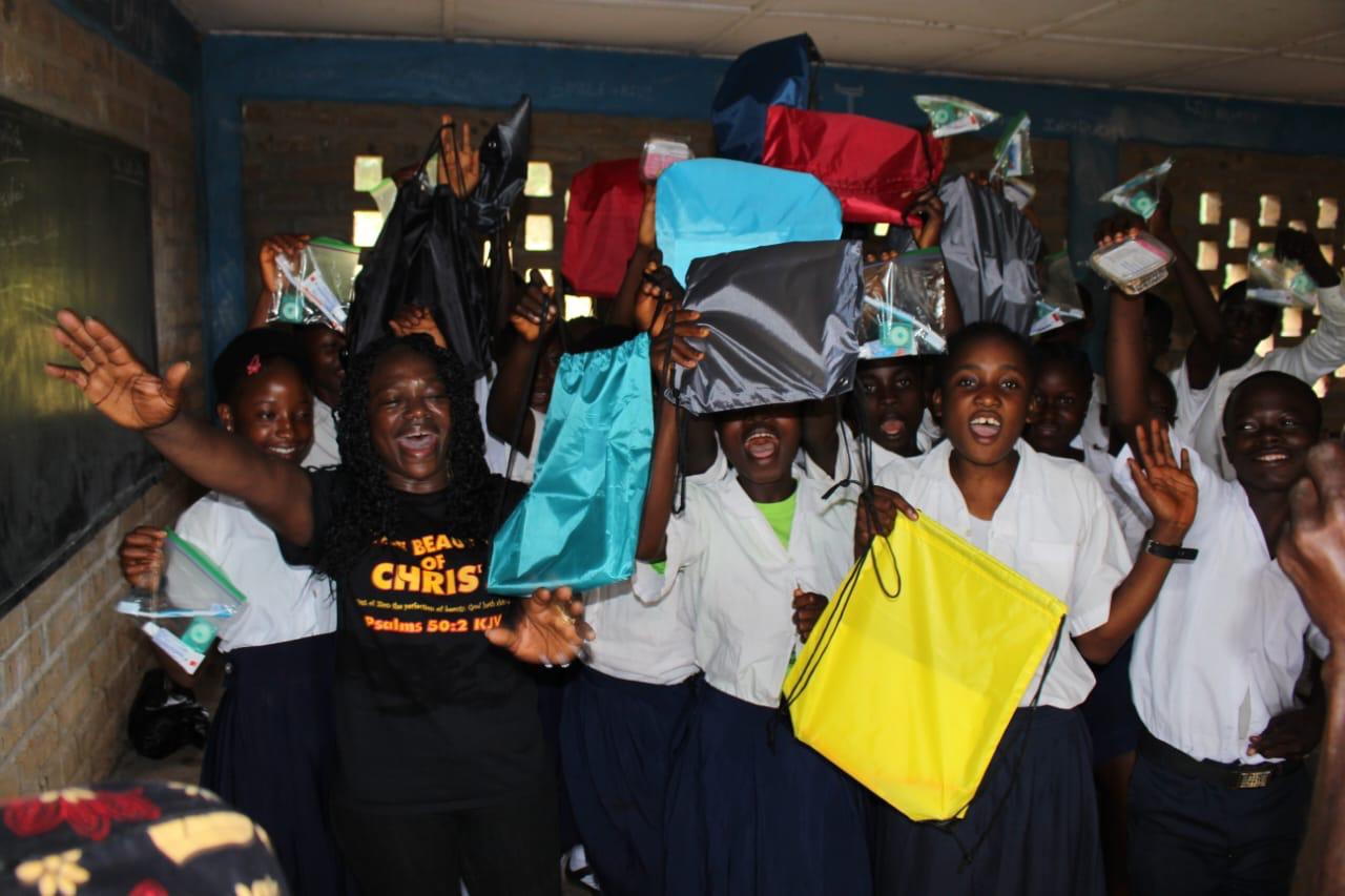 In a humble classroom filled with eager learners, a moment of joy unfolds. Students proudly lift their new school supplies, their faces beaming with excitement and gratitude.