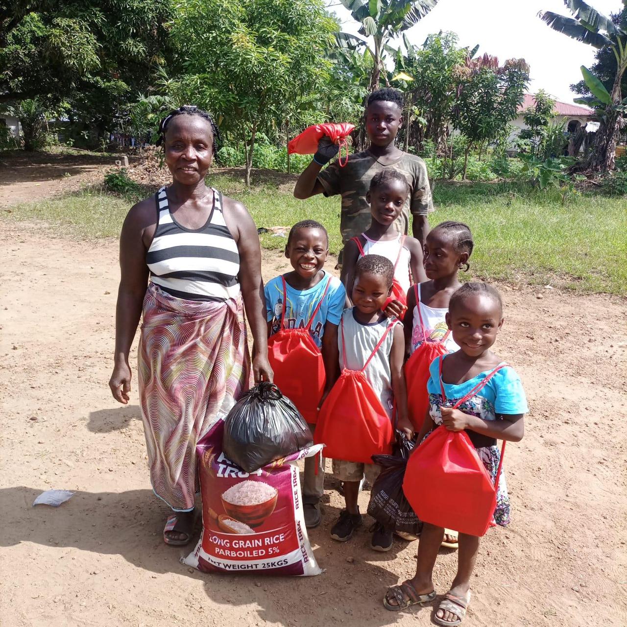In a quiet rural village, where families work hard to build a better future, a small but powerful act of kindness unfolds. A mother stands with her children, each holding a bright red bag filled with supplies.